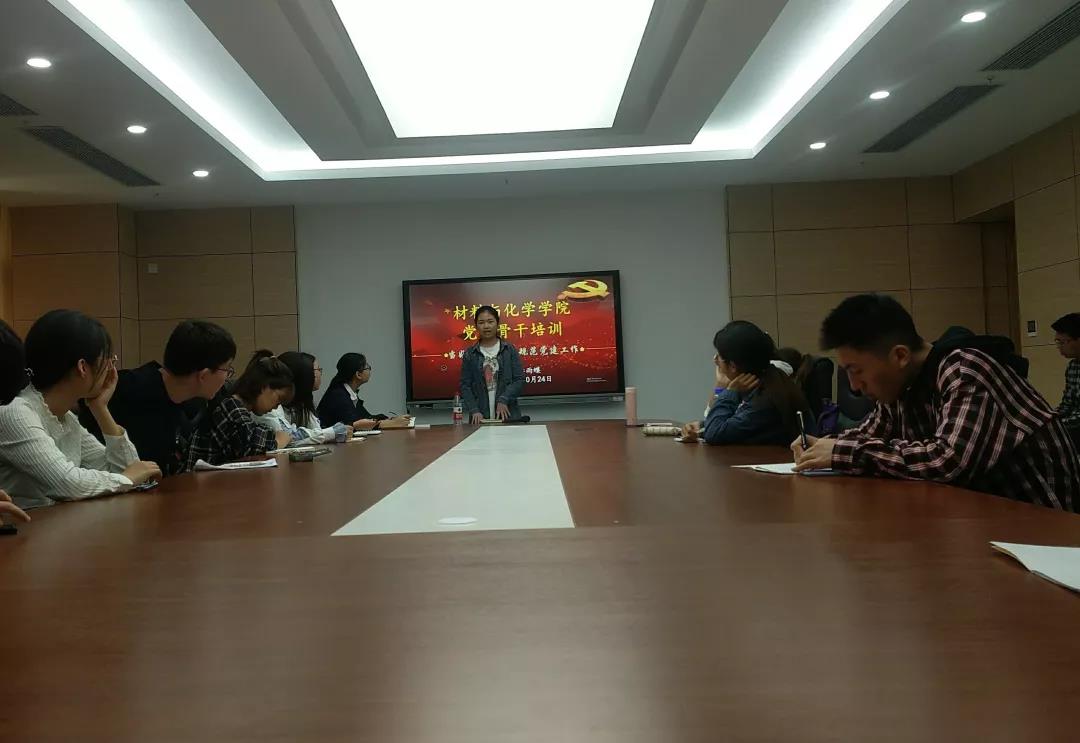 10月24日中午12:30,在未来城校区材化楼317举办太阳集团2138党员骨干培训。学院党建办公室党员管理部部长李雨蝶做了题为“当好责任党员,规范党建工作”的报告,材化学院全体责任党员参加了此次培训。