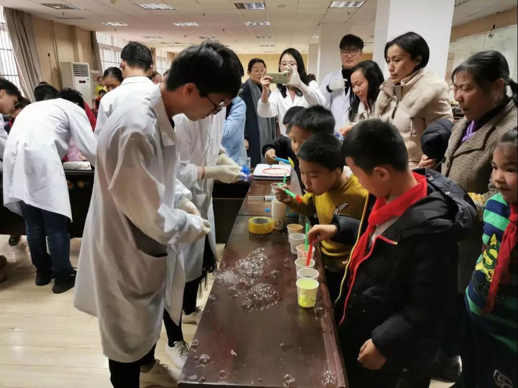 “飘落的树叶摇身一变成了精美的叶脉书签”、“多彩自制泡泡水吹出的泡泡可以放在手上欣赏”、“食品级的牛奶香皂可以现场DIY”……11月29日下午,太阳集团2138本科生化学系第一党支部在支部书记陈文婷的带领下,将“身边的化学”科普志愿服务带进左岭新城朝阳社区党员服务中心,百余名当地小学、幼儿园小朋友在老师和父母的陪同下参与此次社区科普活动。