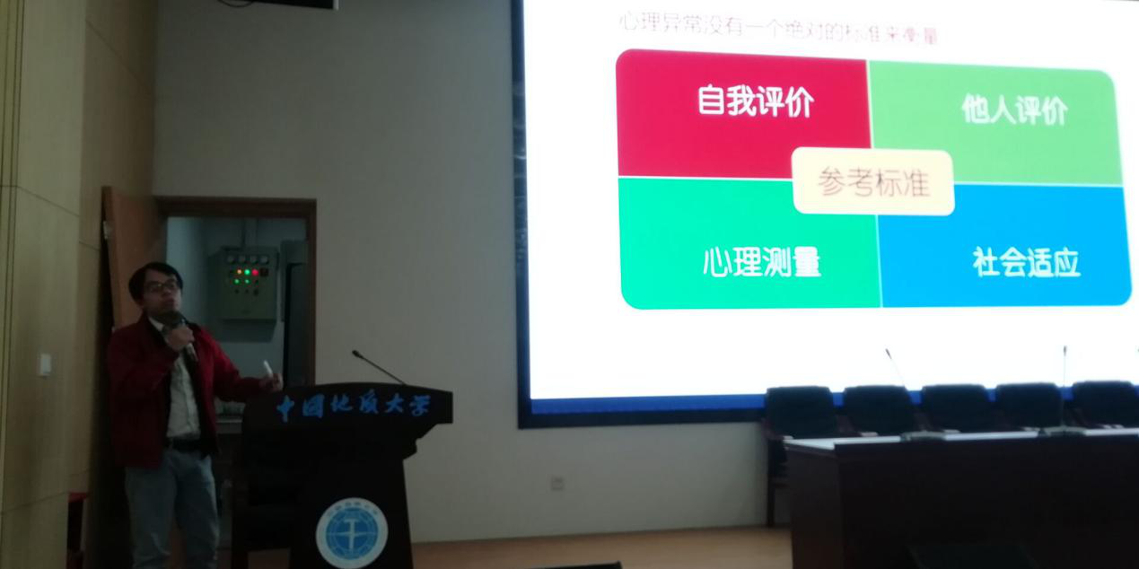 黄海老师作了主题为大学生常见的心理健康问题的识别与预防的讲座,具体讲解大学生可能会遇到的困惑问题如抑郁、强迫、人格障碍等症状及其表现和防治方式,并结合实例进行分析说明。