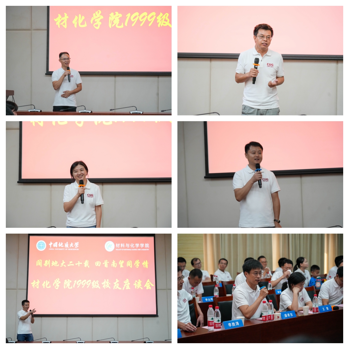 与会领导、老师代表及在校学生分别发言,对校友们返校表示热烈欢迎,并向校友们介绍了学校及学院近年来的建设发展情况。99级校友代表逐一发表感言,回顾在地大求学岁月、毕业后工作经历,充分表达对母校妈院及各位师长的教育恩情。