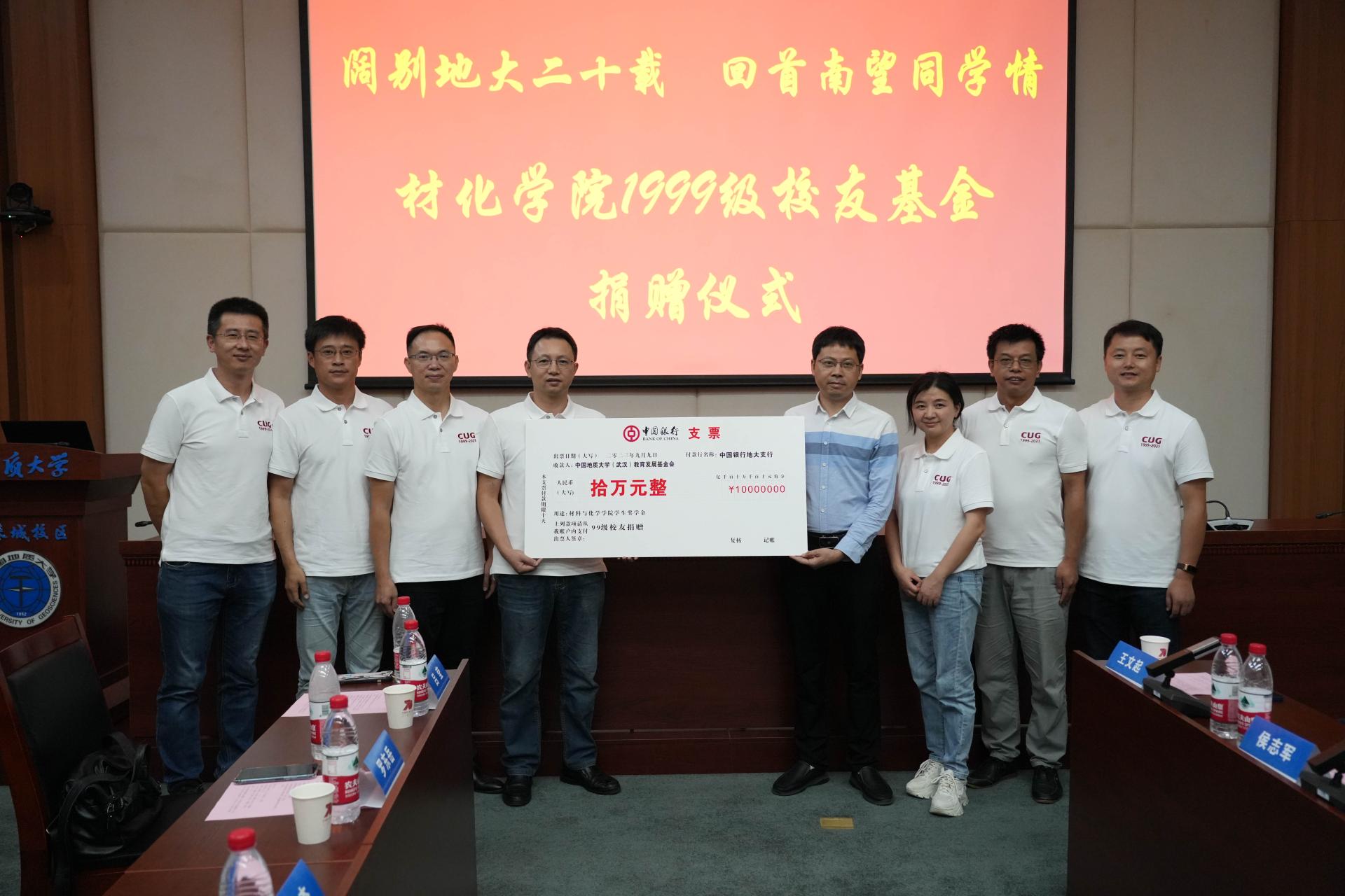 座谈会期间,罗东岳校友代表99级全体校友为学院捐赠十万元,设立“材化玖玖奖学奖教金”,用以奖励材化学院优秀师生。