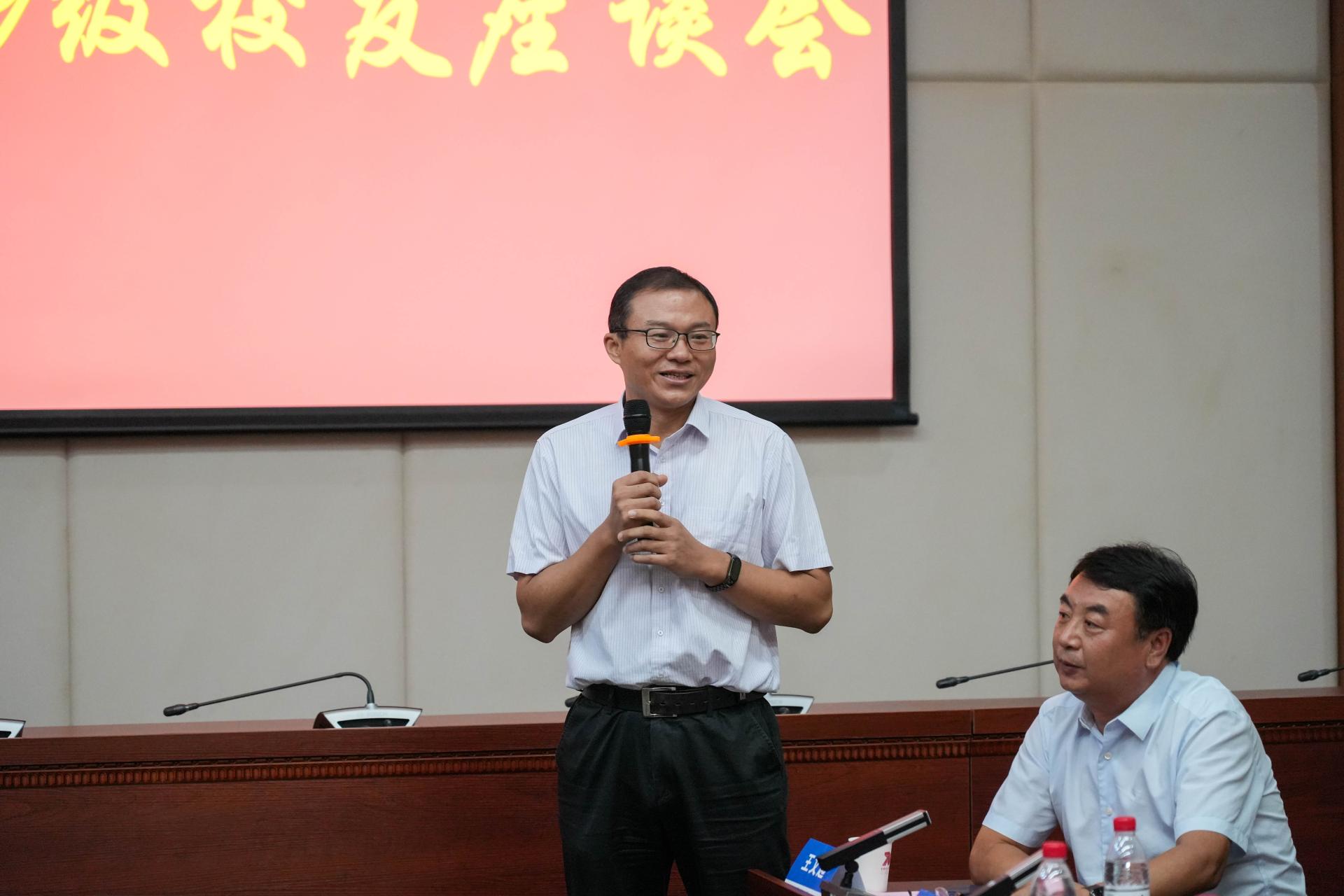 9月9日上午9时,太阳集团213899级校友毕业二十年返校座谈会在未来城校区教学服务中心101会议室举行。校党委常委、组织部部长、统战部部长、时任材化学院党委副书记陈文武,党委宣传部部长、时任材化学院99级辅导员侯志军,未来城校区管理办公室主任、时任材化学院辅导员王文起,材化学院党委书记梁本哲,院长胡兆初,学院党委副书记余江涛,老教师代表沈上越、范力仁,材料系、化学系、院直教师代表,学院学生会主席团以及地子归社团学生代表与99级40余名校友欢聚一堂、座谈交流。学院党委副书记余江涛主持座谈会。