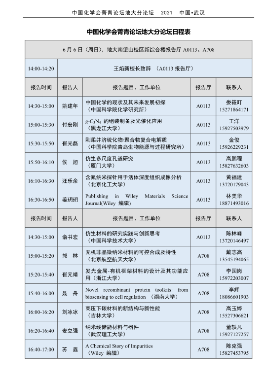 中国化学会箐青论坛地大分论坛日程表