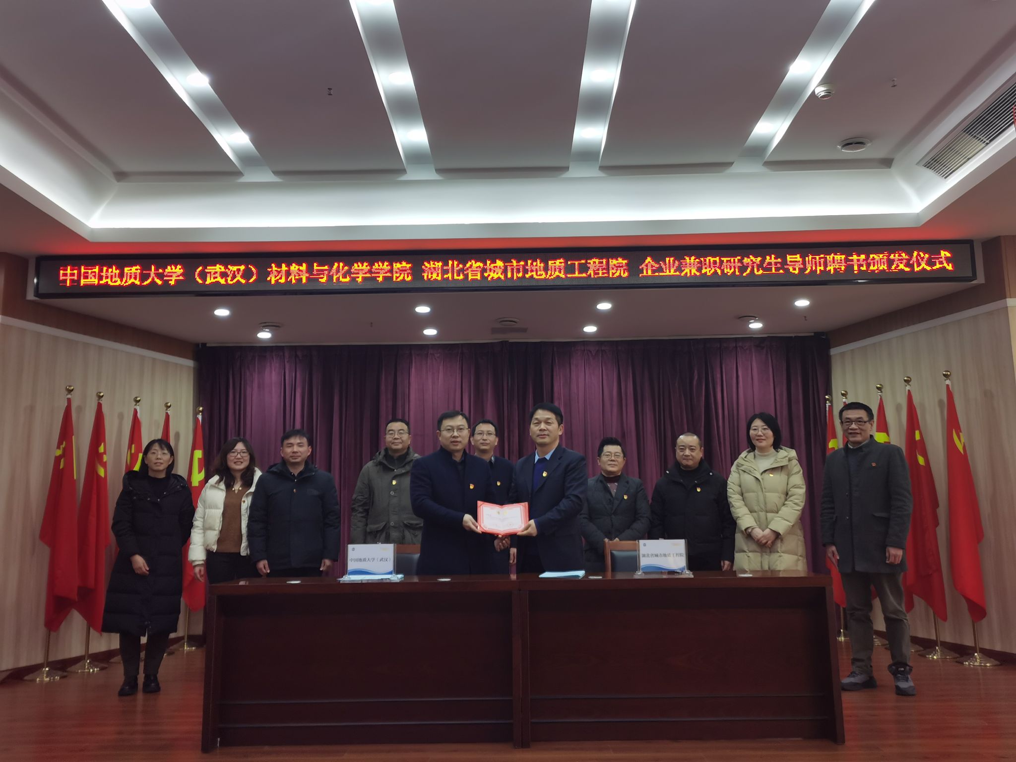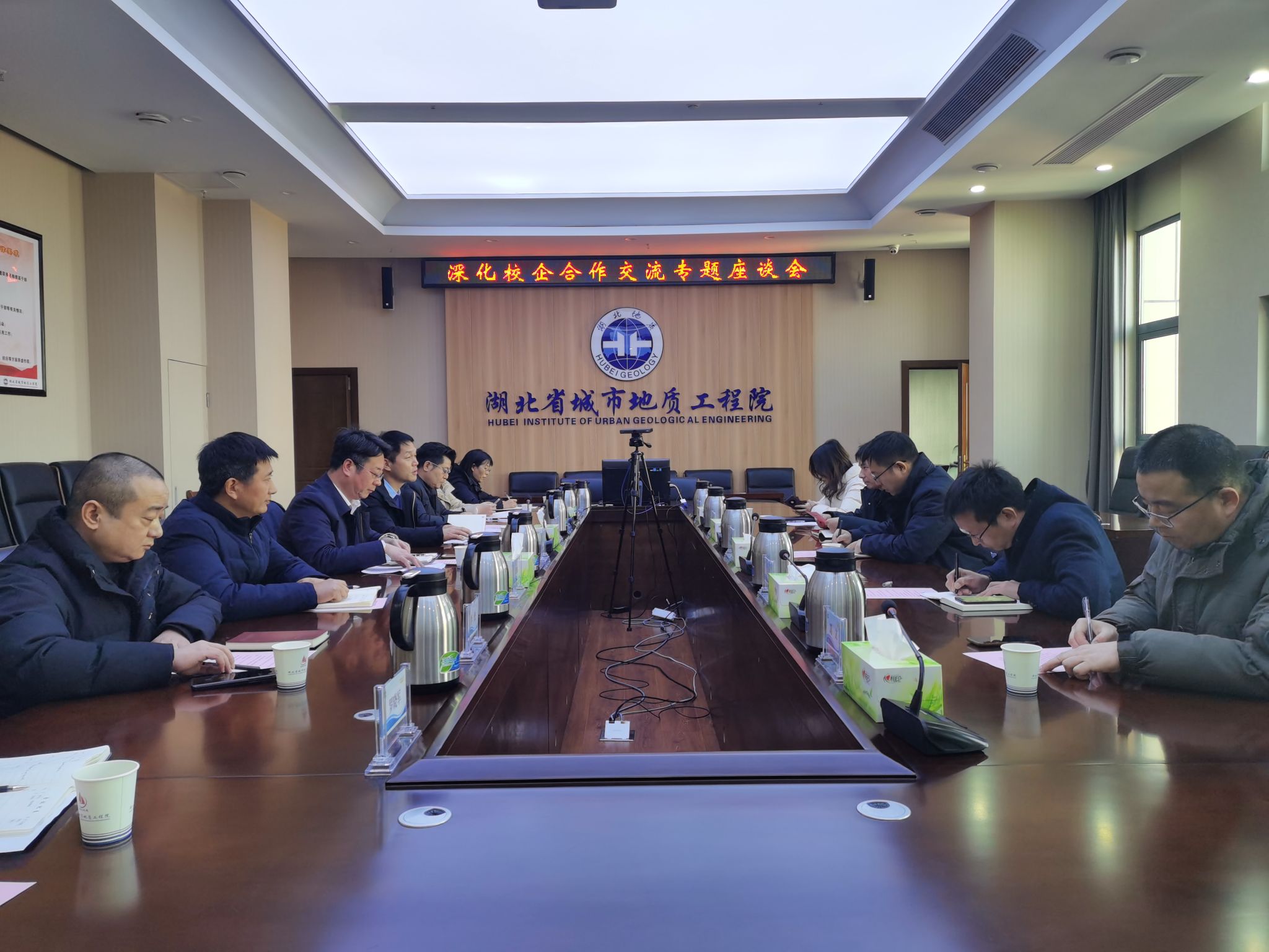 1月24日,学院党委书记梁本哲一行5人走访湖北省城市地质工程院,启动党建联建共创,推动共建学生实践教育基地,并就深化校企合作进行专题座谈交流。