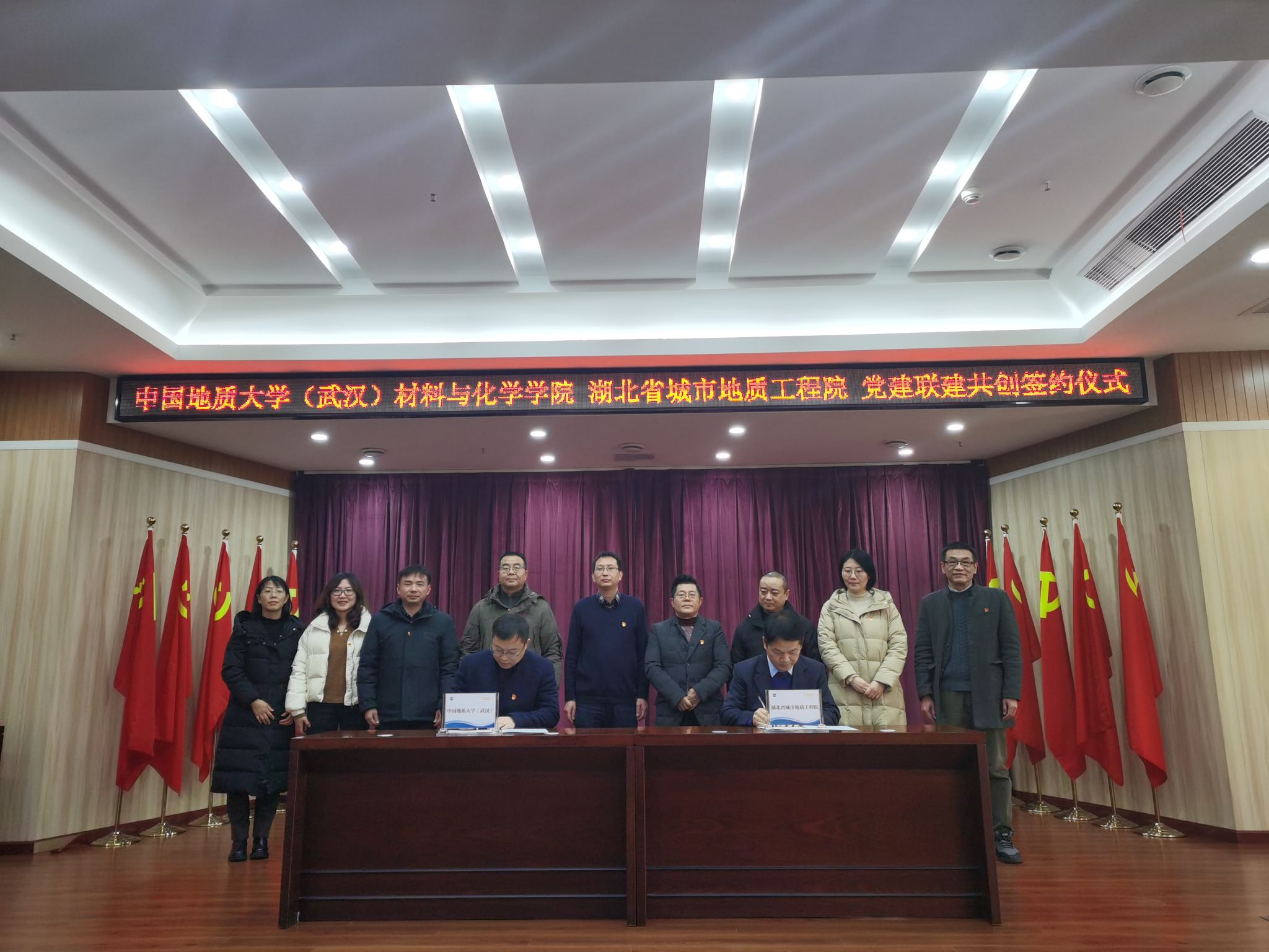 梁本哲和王劲松分别代表太阳集团2138、湖北省城市地质工程院签署《党建联建共创协议》。