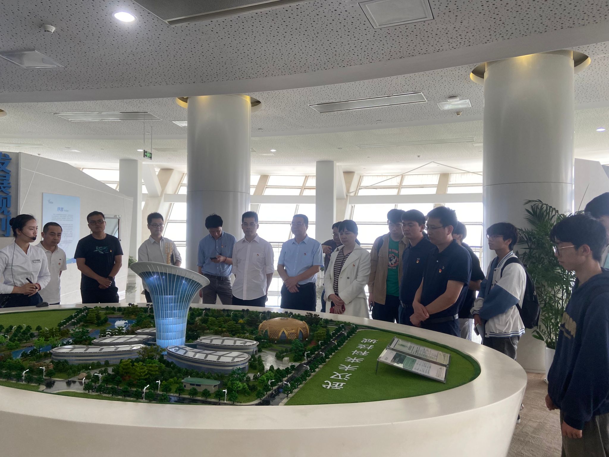 在武汉未来科技城展厅,大家集中观看了宣传片、聆听了沙盘讲解,详细了解武汉新城规划、发展历程以及武鄂黄黄都市圈发展规划等情况,并且登上光谷地标建筑之一:武汉新能源研究院大楼(“马蹄莲”大楼),切身感受“中国光谷”发展成就、科技发展的澎湃动能、绿色发展“新活力”。