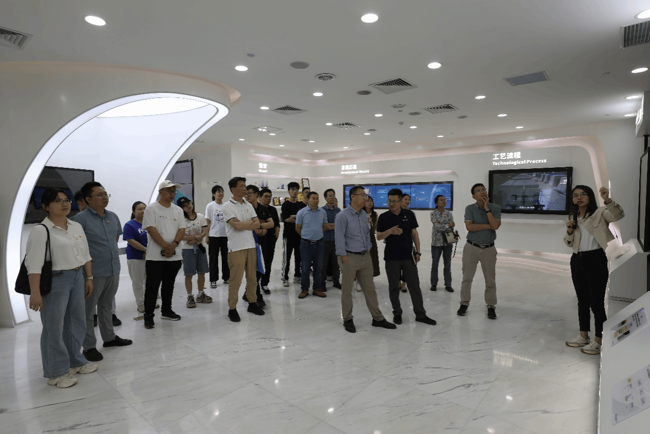 与会人员在武汉天马微电子有限公司讲解员的带领下参观了展厅和走廊。在展厅,大家详细了解了公司发展历程、业务范围、技术创新成果以及行业地位等。在参观走廊的制造流程和工艺环节,师生们直观感受到精密制造的魅力,认识到高科技企业在产品生产过程中的严谨与创新,拓宽了师生的视野,为学院在人才培养和科研合作方面提供了新的思路与方向。