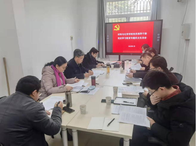 2022年1月17日上午,学院领导班子在南望山校区石材厂A201召开党史学习教育专题民主生活会。王华副校长到会指导,院党委书记黄菊同志主持会议。