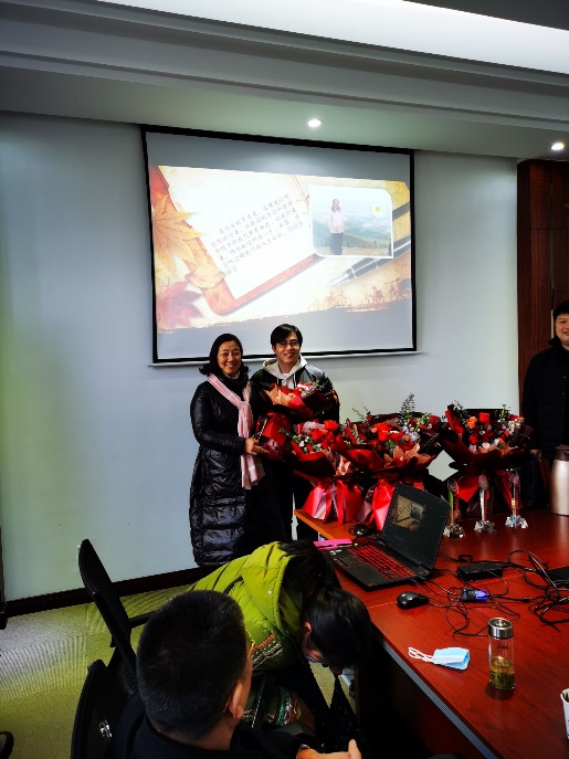 2021年1月11日下午,太阳集团2138老师们在东区综合楼B708隆重集会,为2020年光荣退休的陈艳玲、魏昌华、吴超、万安娃、魏青和王传金6位老师举行“终身成就奖”颁奖典礼。大会由材化学院工会主席沈毅主持,出席大会的领导有院长夏帆教授,黄菊书记及材料系、化学系和实验中心主任、副主任。夏帆院长在致辞中充分肯定了6位老师在几十年的工作中为学院在教学、科研和学科建设中做出的杰出贡献。夏院长饱含深情的说到:几十年来,6位老师在各自的工作岗位上,勤勤恳恳,任劳任怨,忘我工作,把自己的青春和力量无私地奉献给了高等教育事业,把自己的工作热情和智慧奉献给了你们钟爱的材化学院,我们要将他们的优良传统和认真工作的态度传递和发扬下去,把我们材化学院建设得更美好。在他们退休之际,材化学院领导及老师们见证他们的荣光,将材化学院最高荣誉—终身成就奖授予他们。