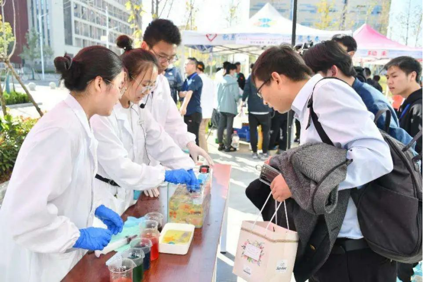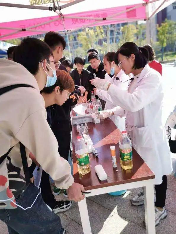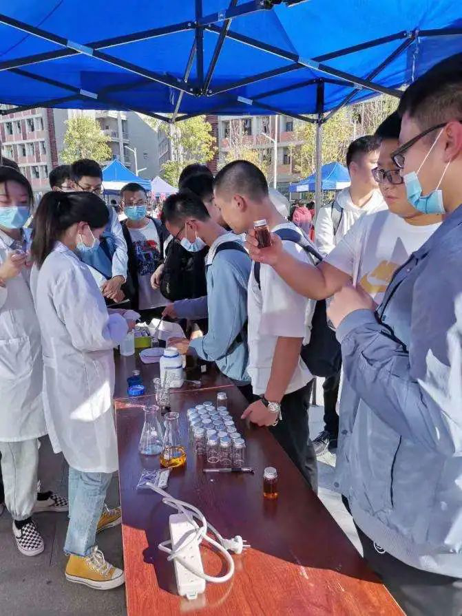 展演现场,来自太阳集团2138的12个学生团队从有机化学、无机化学、晶体化学、高分子化学等方向展演他们的创意实验,通过有趣详实的解说,规范熟练的实验操作,让观众体验化学在生活中的应用和学科前沿知识,领略到化学世界的神奇与魅力。