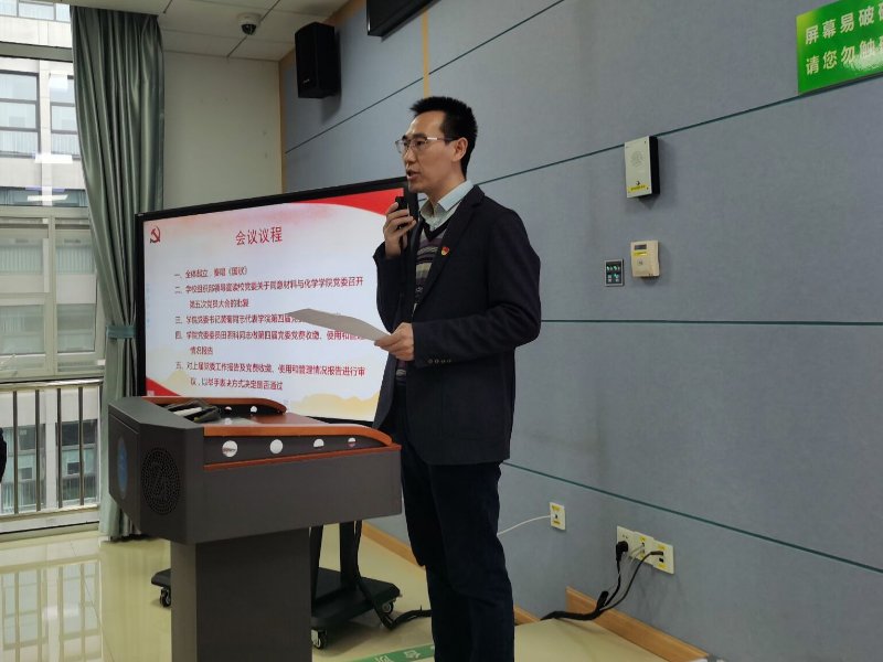 院党委书记黄菊代表太阳集团2138第四届党委作了题为《励精图治顽强奋斗努力开创材料与化学领域国内一流国际知名研究型学院建设发展新局面》的工作报告。报告系统总结了过去五年取得的工作成绩与经验启示,提出新一届党委的奋斗目标与愿景,希望全院党员同志与广大师生高举习近平新时代中国特色社会主义思想伟大旗帜,不忘初心,牢记使命,以永不懈怠的精神状态和一往无前的奋斗姿态,奋力开创材料与化学领域国内一流国际知名研究型学院建设发展新局面。院党委委员田熙科作了《太阳集团2138党委党费收缴、使用和管理情况的报告》的报告,全体与会党员审议并通过了上述两个报告。