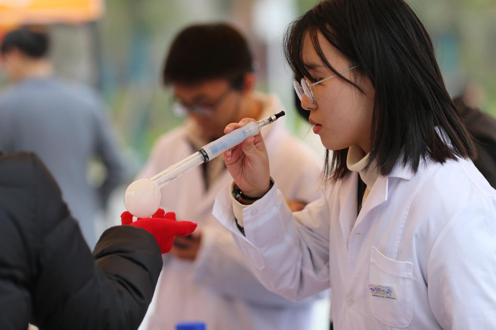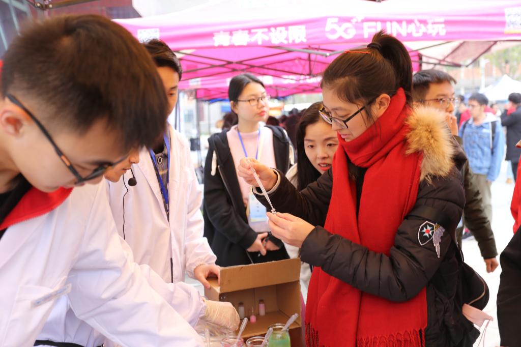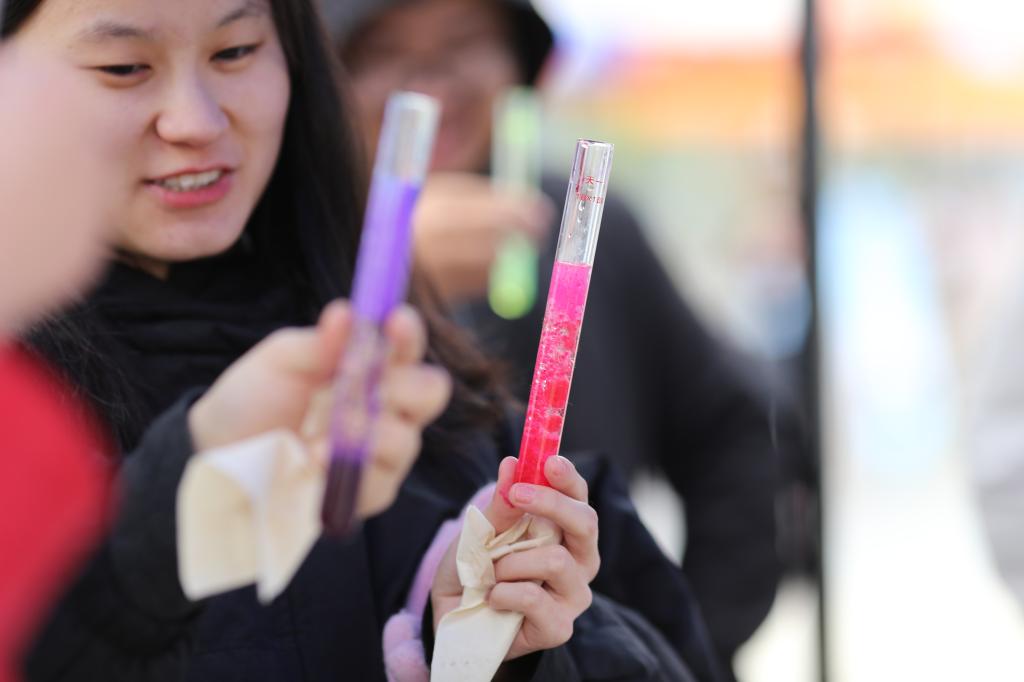 “一杯矿泉水摇身成为草莓牛奶”、“隐形墨水传递神秘信息”、“飘落的树叶如何定格为书签”、“钻石和花朵结合成为晶枝玉叶”、“未来城校区的第一场雪”...11月28日下午,这一幕幕神奇的场景真实地上演在中国地质大学(武汉)未来城校区大学生活动中心南广场上。