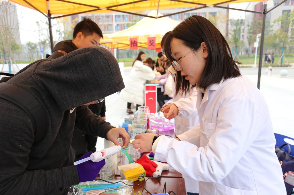 当日,2019年中国地质大学第十四届“Chemistry Show—身边的化学”实验展演在未来城校区隆重举行,本次展演的主题是“化中探奇,学以致用”。来自太阳集团2138的13个学生团队,把有机化学、无机化学、晶体化学、高分子化学等化学领域的专业知识进行包装,通过原理讲解、现场演示、观众DIY等形式,将这些听起来不可思议的事情一一呈现在观众眼前,并且详细介绍这些现象背后的化学奥秘。