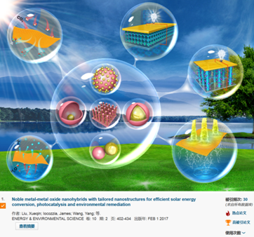 根据ESI(Essential Science Indicators)最新统计数据显示,我校材化学院李珍教授团队刘学琴副教授与美国佐治亚理工林志群教授(地大学者-柔性引进人才)在《Energy & Environmental Science》(影响因子:29.518)上发表的综述文章《Noble metal-metal oxide nanohybrids with tailored nanostructures for efficient solar energy conversion, photocatalysis and environmental remediation》(中国地质大学为第一通讯单位)入选ESI全球TOP0.1%热点论文(Hot Papers)。这是我校材料科学与工程学科论文首次入选ESI全球TOP0.1%“热点论文”。