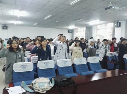 活动在慷慨激昂的团歌中开始,吴老师带领全体参会人员重温了入团誓词并诵读了团章选段。所有人员认真积极的参与进来,气氛庄严。