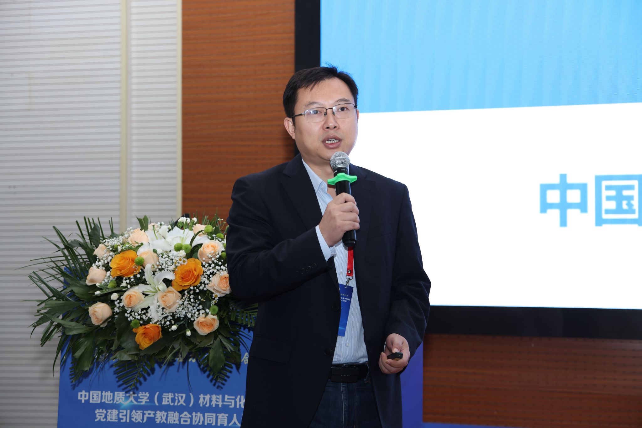 中国地质大学(武汉)党委常委、组织部部长、统战部部长陈文武致欢迎词。她对政校企代表的到来表示热烈欢迎。她表示,为党育人、为国育才是校政企等多方的共同责任,推进产教融合是党的二十大作出的重要部署,希望以此次论坛为契机,构筑务实的政校企常态化合作交流机制,共同为培养适应未来技术改革发展的材料与化学领域拔尖创新人才作出积极贡献。
