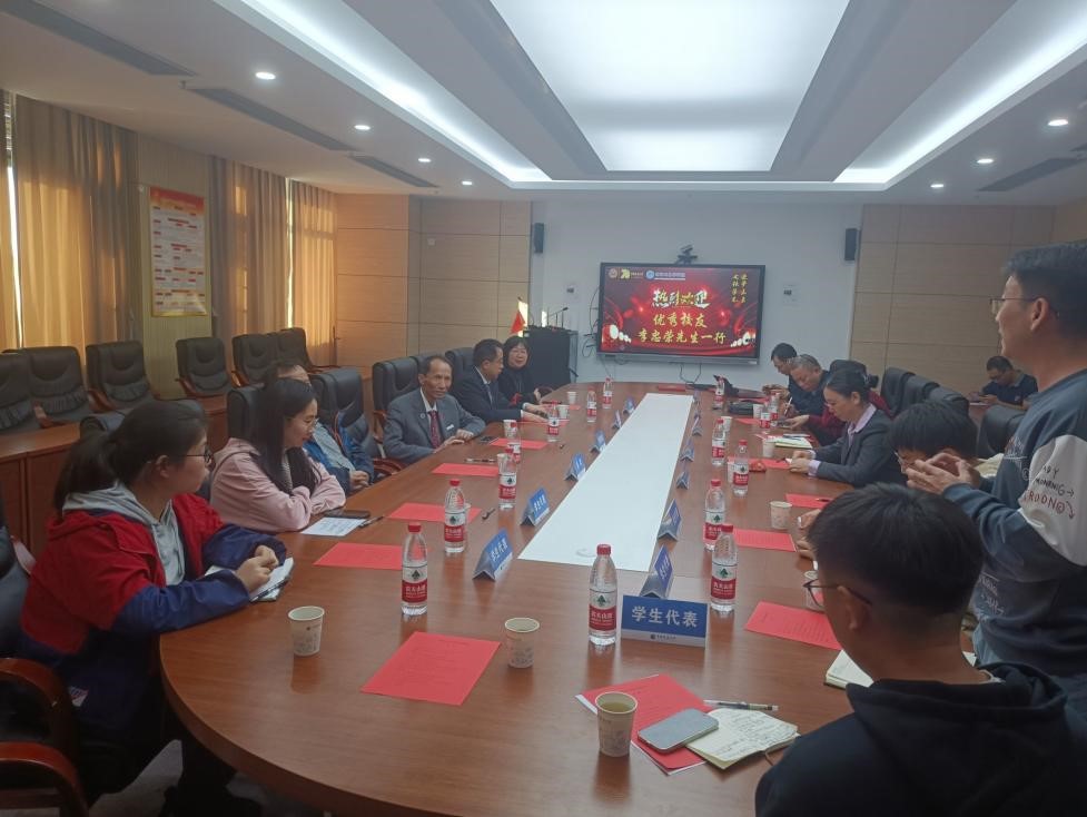 忠荣校友首先参观了学院文化墙、教学实验中心,之后与学院师生共聚科五317会议室,畅叙情谊,追忆往昔,寄望未来。学院领导、教师代表及学生代表等参加了此次交流座谈会。
